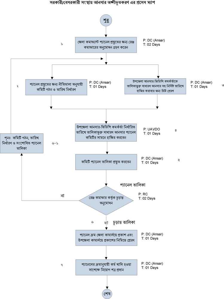 সরকারী বেসরকারী সংস্থায় আনসার অঙ্গিভুতকরণ প্রসেস ম্যাপ